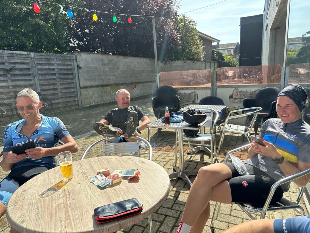 Met 6 (bitter)mannen en ons Eva. Even ter verduidelijking ons Eva is een nieuwe aanwinst voor de A’s en heb ze alleen van ver zien rijden. Voor de rest heb ik ganse rit tussen mijn kader gehangen, bedankt Dave, Guy, Eva, Steven, Kris (mister bitterbal) en Mark om mij thuis te brengen.