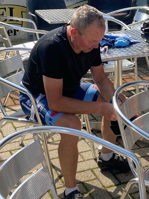 Dit is mijn ergste rit geweest in heel mijn wielertoeristen carrière. De Kris was weer te laat omdat hij gisteren met zijn woman (Engels voor vrouw) Bourgondische bitterballen wou gaan eten in de Kluis. Van een kale bal teruggekomen….