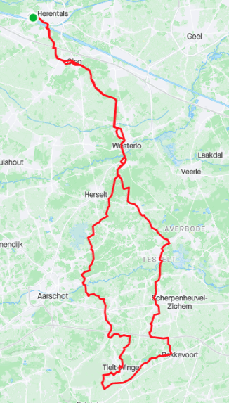 Zondagmorgen, 8u30, het is inderdaad koud maar toch staan we met 8 klaar om te genieten van een zonnige rit. Via Westerlo rijden we zuidwaarts en vanaf Bergom krijgen we de eerste hoogtemeters voor de wielen. Over glooiende wegen rijden we naar Langdorp voor de eerste gravelstrook van de dag. We rijden verder zuidwaarts via Rillaar en Tielt-Winge maar ondertussen zijn de hellingen al wat langer en steiler geworden waardoor bij sommigen onder ons de frank aan het vallen is dat dit wel een stevige rit wordt.